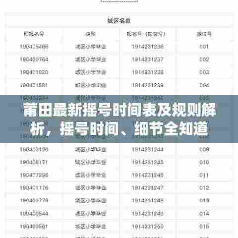随着社会的不断发展,摇号已成为许多城市分配资源的常见方式,莆田作为福建省的一个重要城市,其摇号活动也备受关注,本文将为大家带来莆田今日摇号时间表的最新信息,以及相关的摇号规则解析,帮助大家更好地了解和参与摇号活动。